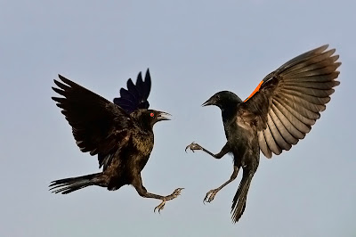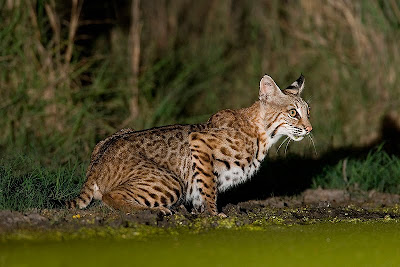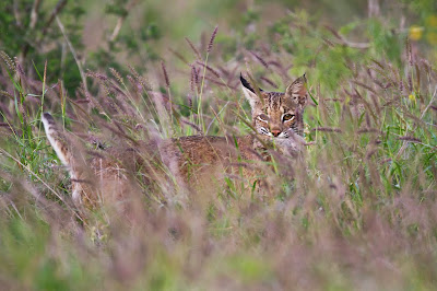 I had only one chance to photograph a bobcat during the month. The bobcat made a kill in front of my blind that I had setup on a water drip to photograph birds. The bobcat never came out from the high grass so I never was able to get a real clear look at him. The bobcat has it's prey (barely visible) in it's mouth. I debated long and hard on this one and finally decided to include the image in my final portfolio not expecting much. Much to my suprise the judges liked the photo and it was scored as one the the top 20 in the wildlife catagory earning me an extra $500.